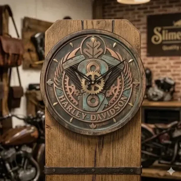Geef je interieur een stoere, industriële upgrade met deze exclusieve Harley-Davidson geïnspireerde wandklok. Dit is niet zomaar een tijdwaarnemer; het is een eerbetoon aan vakmanschap en de vrijheid van de open weg. Met een diameter van 30 cm is deze klok het perfecte middelpunt voor de mancave, garage of een stoere woonkamer.