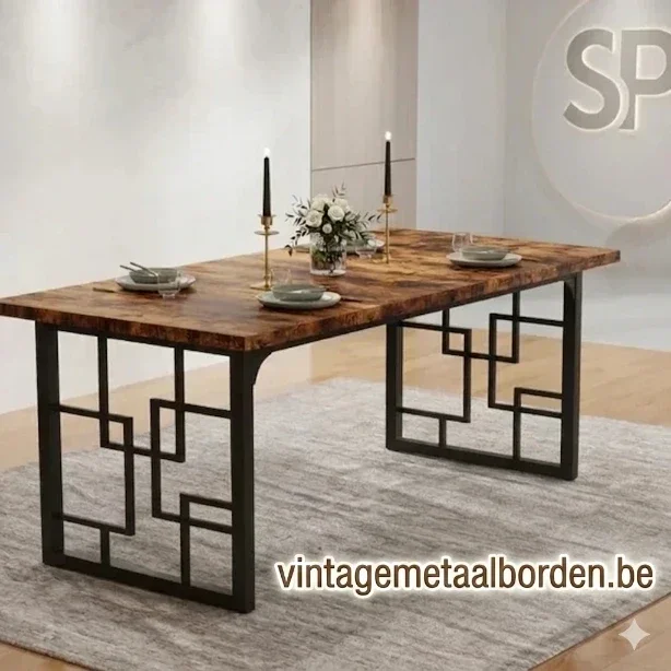 Industriële Eettafel Geometrisch Metaal & Vintage Houtlook